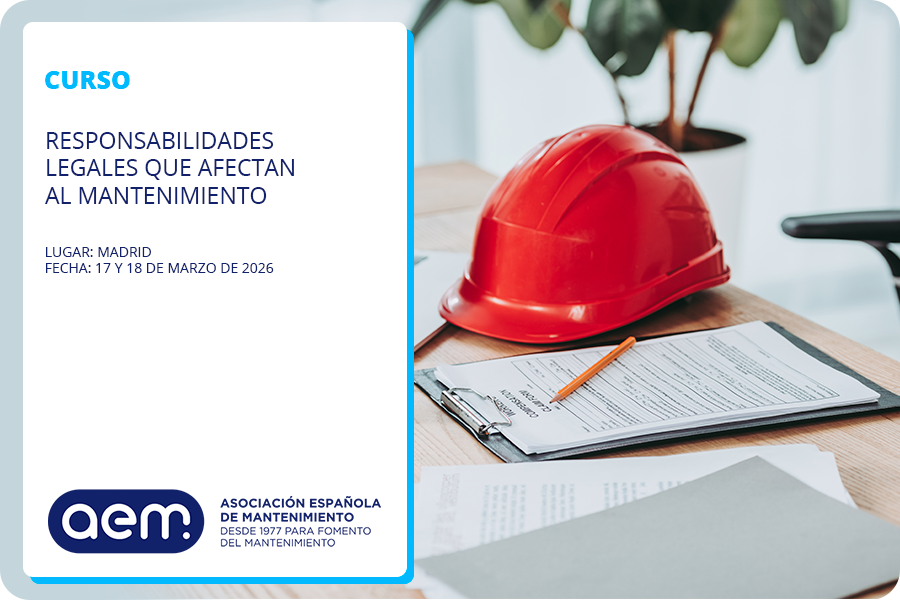 Este curso expone, desde el punto de vista legal, los aspectos más relevantes que deben considerarse en una adecuada gestión de Mantenimiento; con una perspectiva no sólo restringida al contenido de los reglamentos técnicos (habitualmente considerado por los responsables de Mantenimiento), sino también (y especialmente) sobre temas de gran importancia; tales como la responsabilidad administrativa, civil, profesional, y penal en que pueden incurrir los Jefes de Mantenimiento, como consecuencia de sus decisiones; de la redacción e interpretación de los contratos de mantenimiento; y de la P.R.L. (Prevención de Riesgos Laborales) en cuanto a la responsabilidad que les afecta.